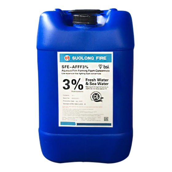 Suolong SFE-AFFF3% Aqueous film-forming foam concentrate is a high qualified Aqueous Film Forming Foam Extinguishing Agent, based on Fluoro & hydrocarbon surfactants including non-toxic chemical components. This extinguishing agent exhibits low expansion foam fire properties which are adaptable for use in various low-expansion foam equipment.