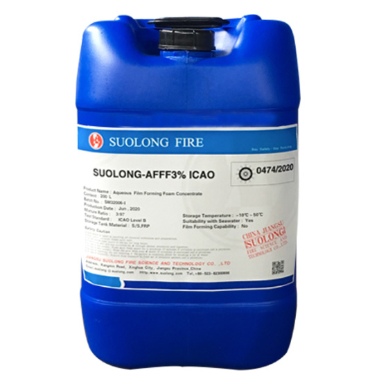 Suolong-AFFF3% ICAO Aqueous film-forming foam concentrate is a high qualified Aqueous Film Forming Foam Extinguishing Agent, based on Fluoro & hydrocarbon surfactants including non-toxic chemical components. This extinguishing agent exhibits low expansion foam fire properties which are adaptable for use in various low-expansion foam equipment.